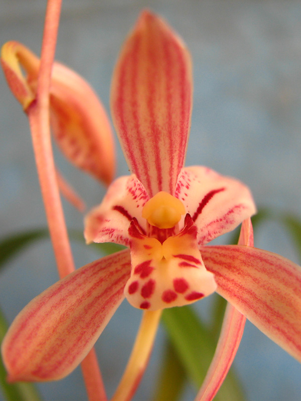 中宽软立叶。一杆多花。色彩明艳,形态优美。纯种夏兰。浓香型。 |