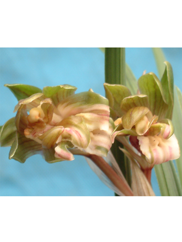 中宽软垂叶,叶边带齿。经脉明显。一杆一花.有时一杆开双花。形态优美,是春兰和天然野生线叶兰杂交种,幽香型。 |