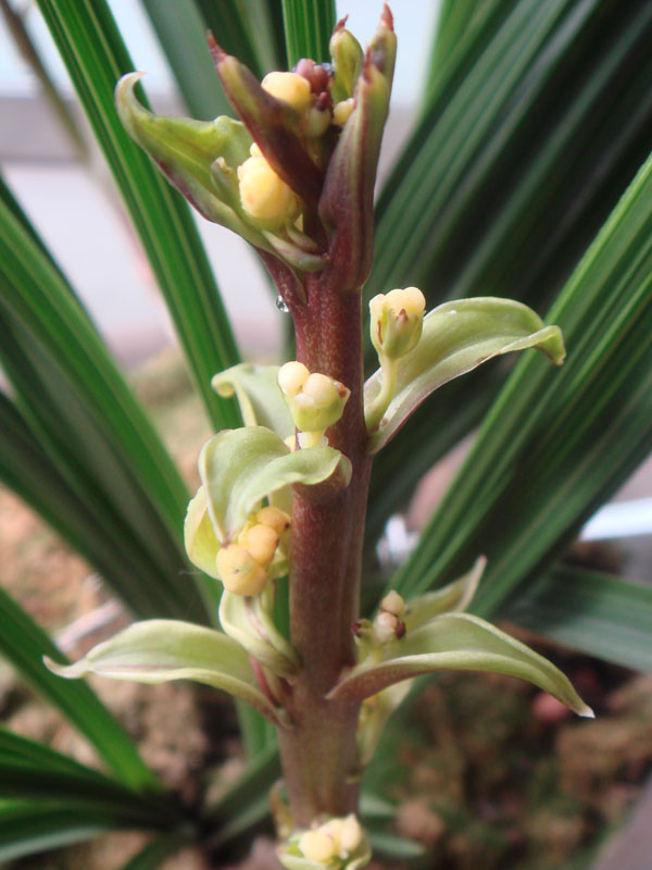 此花为翠绿色的奇梅。花杆赤转绿。外瓣花衣变花瓣,长、大。花瓣里长花朵,外瓣、捧瓣、舌头及鼻柱一应俱全,小花形似于桂花。此品种非常珍稀,十分难得。新品,尚未在市场推广,值得兰友收藏和投资。总数40苗左右。 |