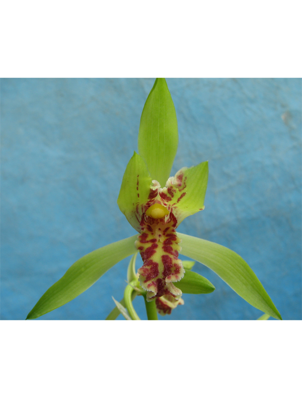 纯种蕙兰(九华兰、巴茅兰)中宽软垂叶,叶片粗糙,带齿,经脉透亮。一杆多花。色彩明艳,形态优美。浓香型。