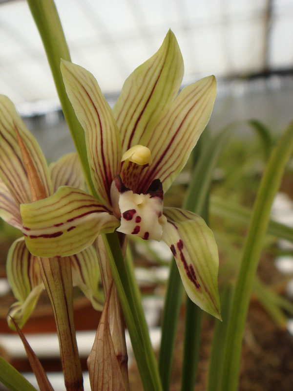中宽软立叶,一杆一花。花色彩明艳,纯种的春兰,浓香形。