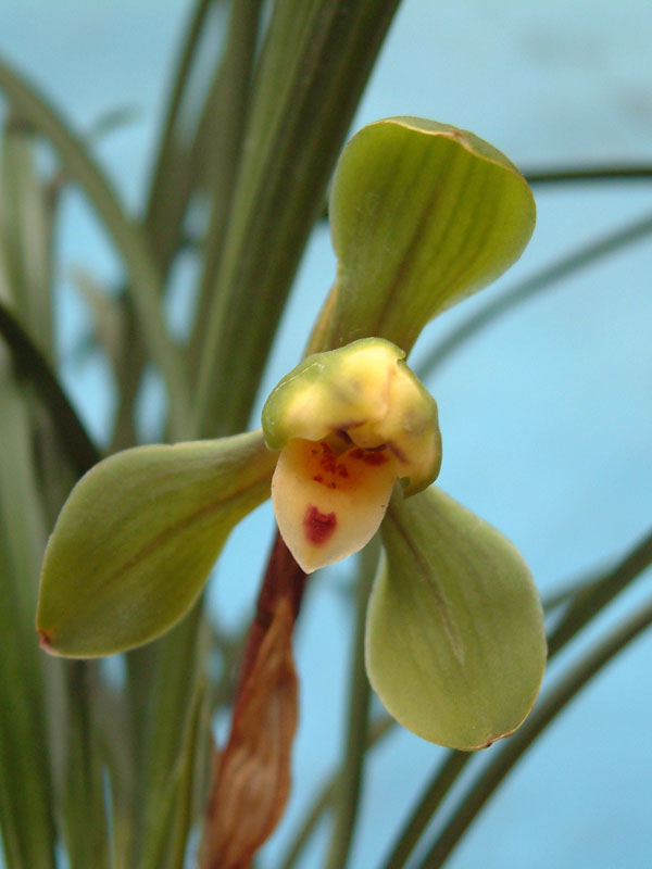 中宽软立叶,叶边带齿。经脉明显。一杆一花。花色彩明艳,是春兰和天然野生线叶兰杂交种,幽香型。